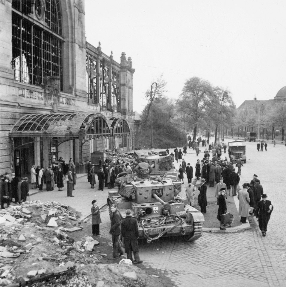 During that day, British sappers demolished the statue of Hitler. They used its shattered remnants as hardcore to repair the road churned up by their tanks.