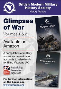 In addition, we requested our supporters to send in their own and family accounts of wartime experiences – any war, any role, military or civilian. Such was the response that we published Glimpses of War Volume 1 in April 2021, over 500 pages of moving accounts of heroism, tragedy, hardship and resilience. All profits are donated to the charity Blind Veterans UK (formerly St Dunstan’s). Glimpses of War Volume 2 was published in October 2021 and Glimpses of the Falklands War was published in June 2022 in time for the 40th anniversary of the Liberation of the Falkland Islands. The reviews of Glimpses of War have been outstanding from all quarters.