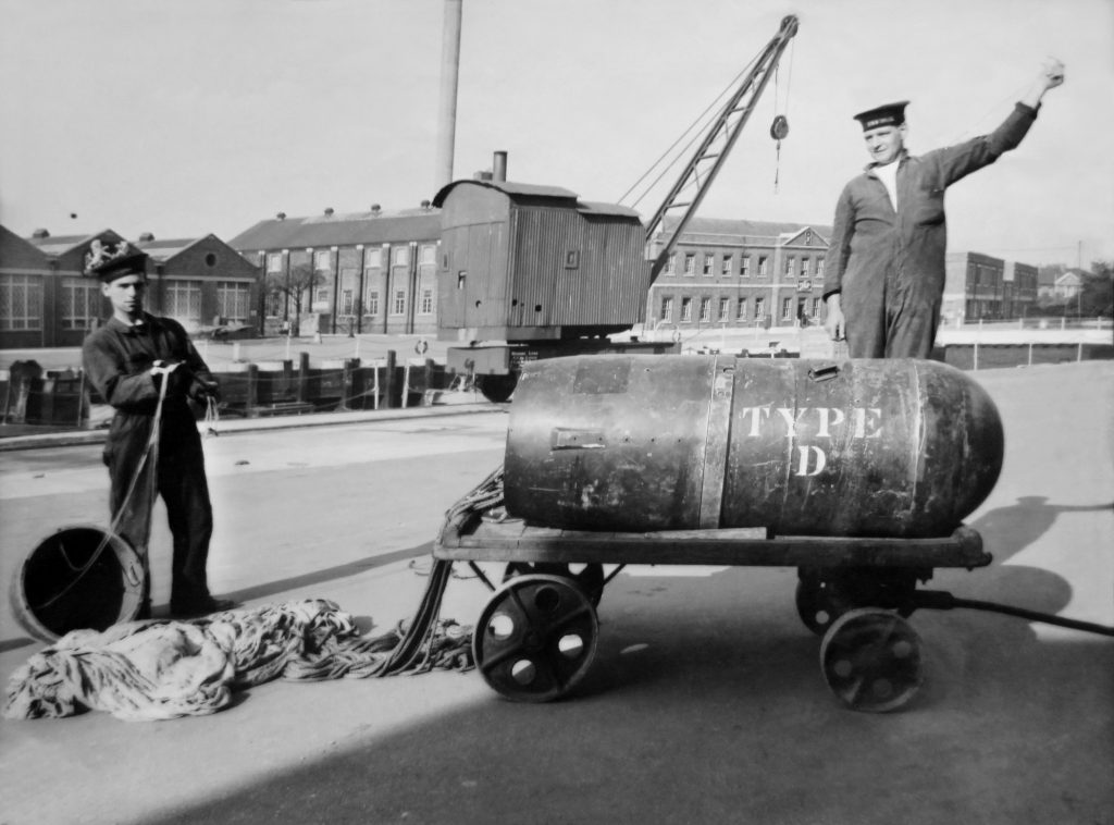 As the parachute mines which the Luftwaffe dropped on British towns and cities were essentially naval weapons, it fell to the Royal Navy to deal with those which failed to explode. A naval unit operating under the name of Rendering Mines Safe, allowed careful examination of their design to be carried out. In this way, development of countermeasures could be pursued in order to frustrate the effect of those dropped in the sea lanes around Britain’s coast and in her river estuaries.
