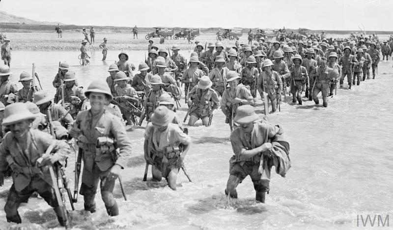 THE CAMPAIGN IN MESOPOTAMIA DURING THE FIRST WORLD WAR (Q 24656) British troops wading across the Aq Su Wadi. Copyright: © IWM. Original Source: http://www.iwm.org.uk/collections/item/object/205215664
