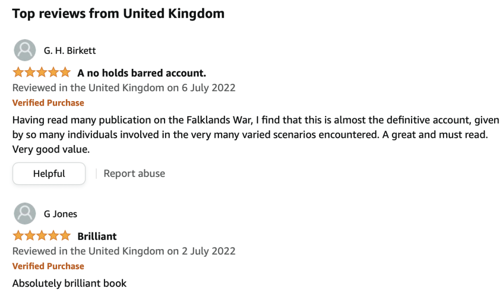 I thoroughly recommend ‘Glimpses of the Falklands War’ to you. Its many vivid and wide-ranging eye-witness accounts, most never before published, are riveting to read, bringing the war and its aftermath alive on the printed page. The BMMHS is certainly to be congratulated for galvanising some two hundred contributors from across the globe, including the Falklands and Argentina, to reveal their individual memories of so many different aspects, and for collating and publishing them, all in just a few months; the result is a very powerful and unique testimony to the life-changing event that was the Falklands War. The accounts in ‘Glimpses’ are all the more poignant for being tempered by forty years’ reflection and reconciliation, and for helping raise funds for Blind Veterans UK.