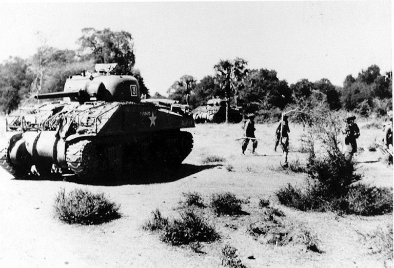 Slim emphasised the need for jungle warfare training and the use of more aggressive tactics that included the formation of defensive ‘boxes’ by surrounded units that were supplied by air. Perhaps his greatest contribution though was that of talking to soldiers and restoring their morale. He was a fine manager of men and able to get them to do his bidding. Slim undertook a partially successful attack in the Arakan in February 1944, and then, in the battles of Imphal and Kohima, he repelled a Japanese invasion of north-east India. Both campaigns demonstrated that his new approach worked. The Japanese were able to encircle the formations of 14th Army, but could not defeat them, losing over 60,000 men and exhausting themselves in the process.