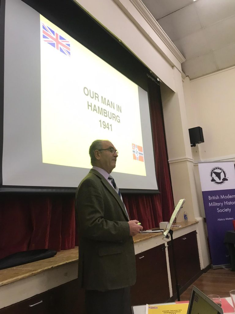 On Wednesday, Robert Dicketts gave the BMMHS a fascinating true spy story of WW2… ‘Our Man in Hamburg’. Double agents, MI5, the Abwehr and Gestapo with intrigue and huge somewhat questionable personalities in the heart of wartime Hamburg which Ian Fleming, as a story would have been proud of. All with a magnificent twist at the end. A full house at BMMHS enjoyed a fun evening with food and refreshments and raised £160 for Robert’s nominated Special Forces charity.