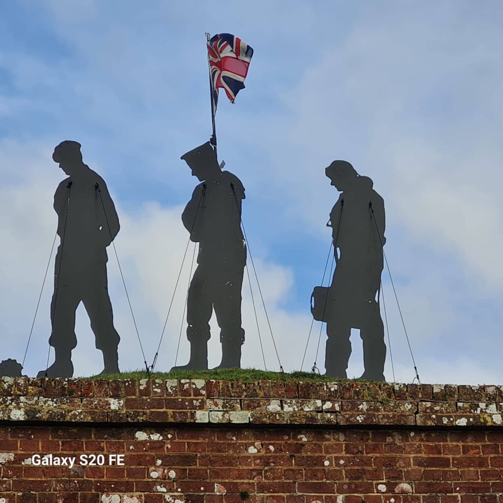 Having been fortunate to attend the main RBL D-Day celebration at Vers sur Mer overlooking Gold Beach on the actual 80th anniversary last year, the contrast between that and last week was substantial. That event with all the dignitaries, set overlooking the actual battleground and seashore set in lovely sunshine was a mixture of celebration of the actual 80th anniversary and a national tribute to those who fought. To honour the ones who didn’t return with all the publicity and media commensurate with a national event as the few remaining D-Day veterans were honoured. In contrast, at Fort Nelson on that bleak and blustery day last week, members of the general public visited the Giants without any ceremony encapsulated in their own thoughts to pay their own personal respects to those who fell on that important day. But at both events, the focus was on the men and women who didn’t return home, to those who fought and survived and for the country they liberated and for the freedoms we now treasure today. Each individual who was killed that day was a special person to someone back home. A father, a mother, brother or sister, a wife, husband or fiancé or a good friend. Someone who was greatly loved and sorely missed. They made that ultimate sacrifice. As the moving Kohima Epitaph says