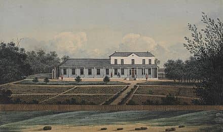Johnston released Macarthur from jail and the two men drew up a petition signed by their allies mainly from the Corps declaring Bligh unfit to be Governor. At six p.m. on the evening of 26th January 1808, Bligh’s order for the six officers to go to Government House was obeyed, but not in the way he expected. Instead, the New South Wales Corps arrived at Government House with a band and full colours. Their intention to arrest Governor Bligh was clear. They were briefly delayed when Bligh’s plucky daughter Mary attempted to ward the soldiers off with her parasol.