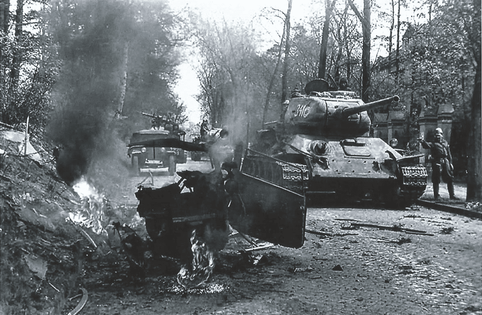 Even so, the Communist Party sought to exert a strong influence over soldiers. In April 1943, while marching towards Stary Oskol, Abdulin, noted how troops were bombarded by propaganda slogans: ‘Everything for the Front! Everything for Victory!’ and ‘Death to the Fascist Invaders!’ Likewise, armour would often be daubed with uplifting inscriptions, including a T-34 tank from 45th Separate Tank Regiment, 8th Estonian Rifle Corps that bore the words: ‘Za Sovetskuyu Estoniyu’ (For the Estonian Soviet). Vasily Krysov spent much of his war commanding self-propelled guns (SPGs), and discovered that another method the regime employed to exert its hold over the military, was to induct combat veterans into the Communist Party, especially if they’d performed with distinction.