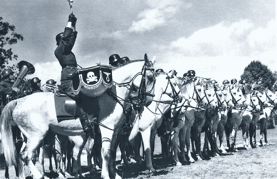 The SS originated in the 1920s as a personal protection squad or Schutzstaffel for Adolf Hitler (hence the term SS). Initially a small force but by the time of Hitler’s rise to power, there were over 50,000 members, who mainly comprised the Allegemeine or general SS, and effectively formed a military wing of the Nazi party. Membership was based on strict racial and ideological criteria. From 1935, when conscription was re-introduced in Germany, the fighting (Waffen) side developed, as SS Verfügungstruppen were established as genuine combat troops, while the elite Leibstandarte Adolf Hitler(the Führer’s personal body guard) was eventually expanded to form four regiments intended to serve under army command in wartime. Simultaneously, the SS Totenkopfverbände (SS Death’s Head troops) were employed specifically ‘to clear up special tasks of a police nature,’ which as the distinguished military historian John Keegan has emphasised, was a ‘grisly euphemism’ for guarding concentration camps and mounting political actions in occupied countries. Like the Leibstandarte Adolf Hitler, this unit was expanded during the late 1930s, and ultimately formed the basis of the 3rd SS Panzer Division (Totenkopf) that saw significant action in the West during 1940 and on the Eastern Front during 1941-1945.