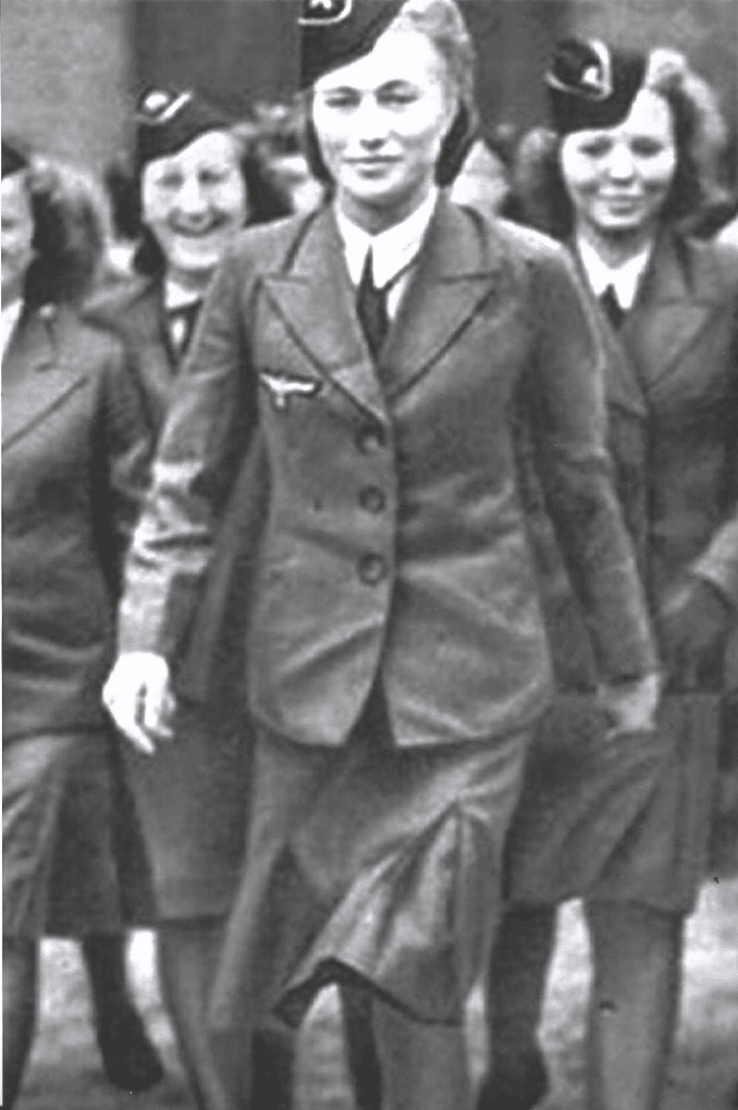 Women also supported the Waffen-SS. About 400 Norwegian nurses, for example, who’d volunteered for military service were integrated into the German Red Cross, and provided medical support as part of the Norwegian Waffen-SS Legion on the Eastern Front during 1941-1943. Twenty were recorded as missing or killed. Other Norwegian women volunteered as Kvinnehird or welfare assistants, who undertook a role akin to social workers to assist clinical staff with the non-medical requirements of convalescent patients. They sported a striking green uniform jacket and skirt, with a yellow blouse and black tie, and Nazi insignia, plus a distinctive badge in yellow and red based on the St. Olaf’s Cross.